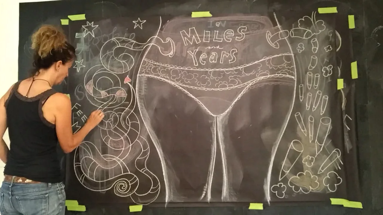 From "Hot Summer" video, 2015, Chalk on paper, 5' x 4'